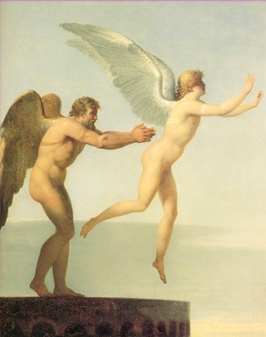 | dedalo e icaro | Título: Dédalo e Icaro. Autor: Charles London, 1799. Dédado hizo alas con cera y plumas para escapar. El enseño a su hijo caro a colar y le advirtió que no lo debia hacer muy cerca del sol, pero Icaro no le obedeció, la cera se derritió e Icaro cayó al mar. |